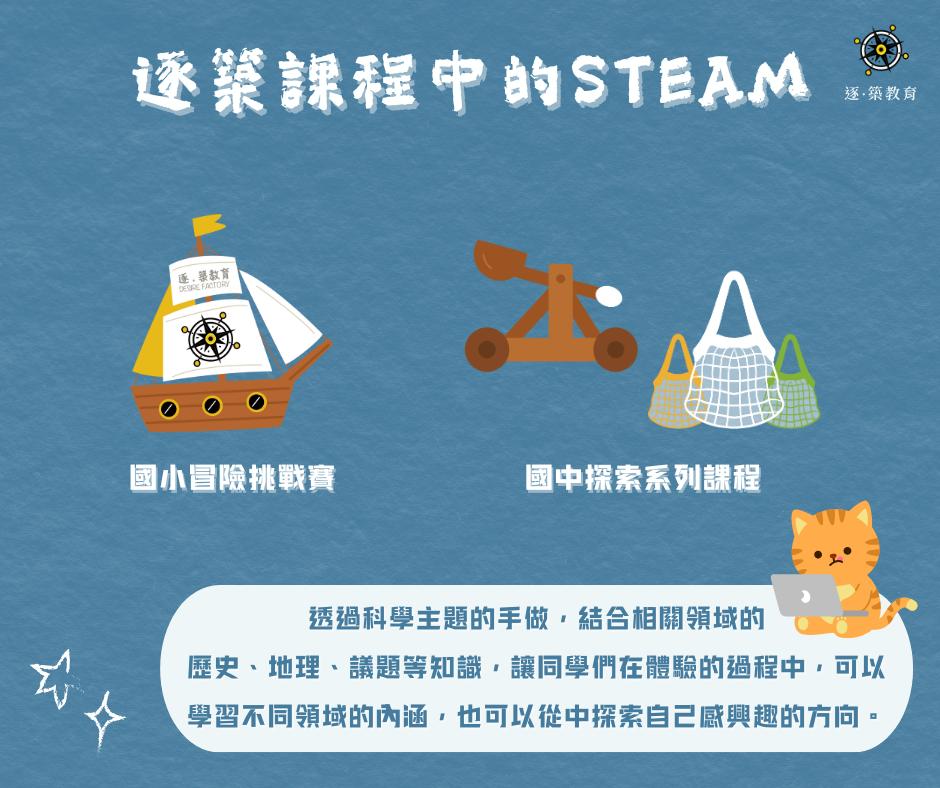 現今的STEAM課程,大多著重在科技、資訊領域的課程,而逐築相信科技始終來自人性,當一個人學習的面向越開闊,能運用的也就越多元,從小扎根在手做、實驗、生活體驗,更能全面的啟發學員在未來科技應用。