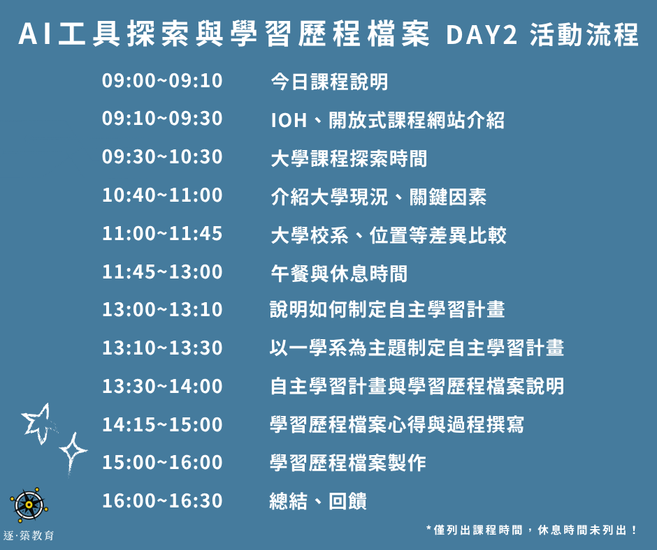 補習班的課程可以補課,但沒參加到營隊只能等待下個寒暑假才能有機會再次體驗,因此選擇參加營隊可能是值得的喔!另外,逐築提供的活動內容可能與學校的寒輔課程以及補習班的常態課程不同,我們期待成為你升學路上額外的養分,補足你對於升學知識的了解、個人特質的認識、審查資料的準備、學習旅程的規劃等,都能更上一層樓,一起追逐自我,建築夢想!